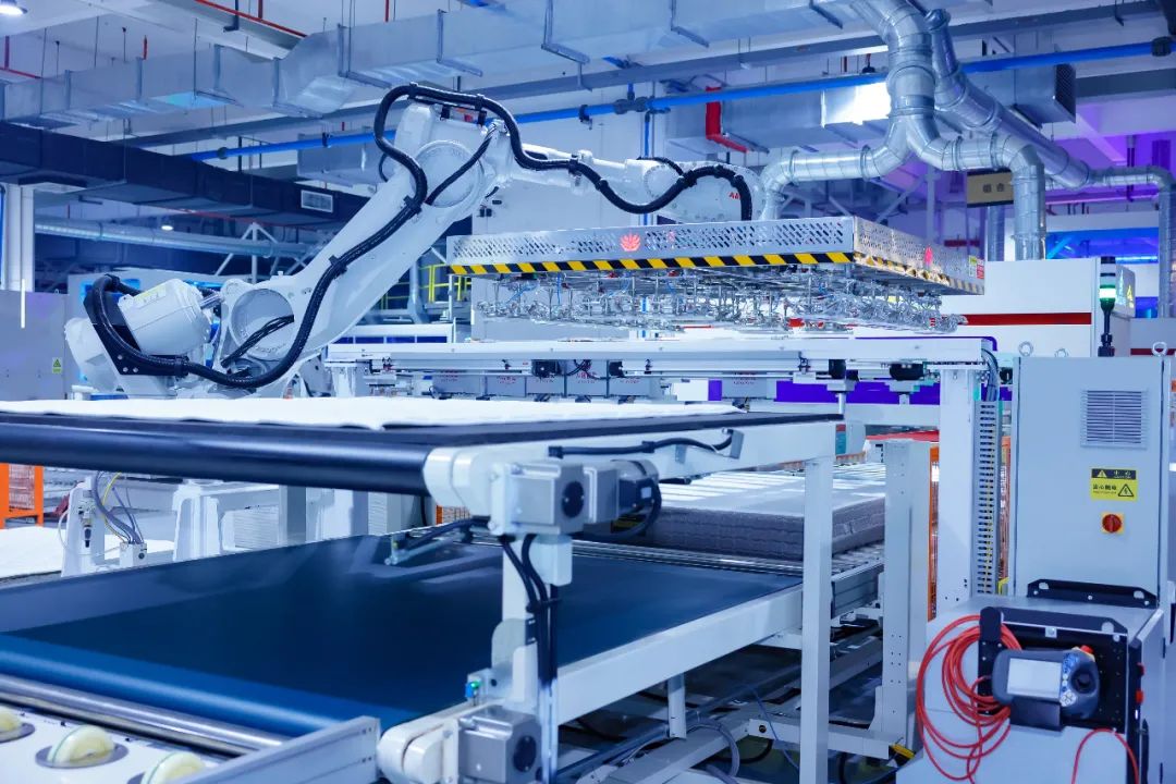 这也是让本次《极限挑战》明星嘉宾震撼的地方:高度自动化的车间内,床垫不落地、不交叉、不迂回,在一条流水线上搬运、翻转,一气呵成,过去的脏活、苦活、累活,基本都由机器包揽。车间里的女工也多了起来。